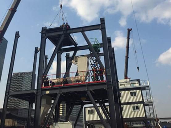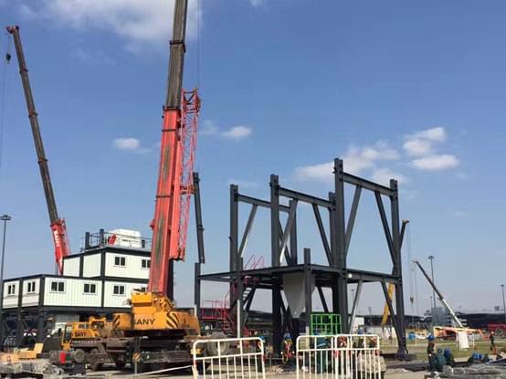 今天是上海寶馬展南方路機(jī)展品進(jìn)場安裝的第三天。在安裝團(tuán)隊成員間的積極配合下,各項安裝工作按計劃進(jìn)行中,瀝青混合料攪拌設(shè)備和干混砂漿攪拌設(shè)備主樓基礎(chǔ)層已經(jīng)搭建起來。